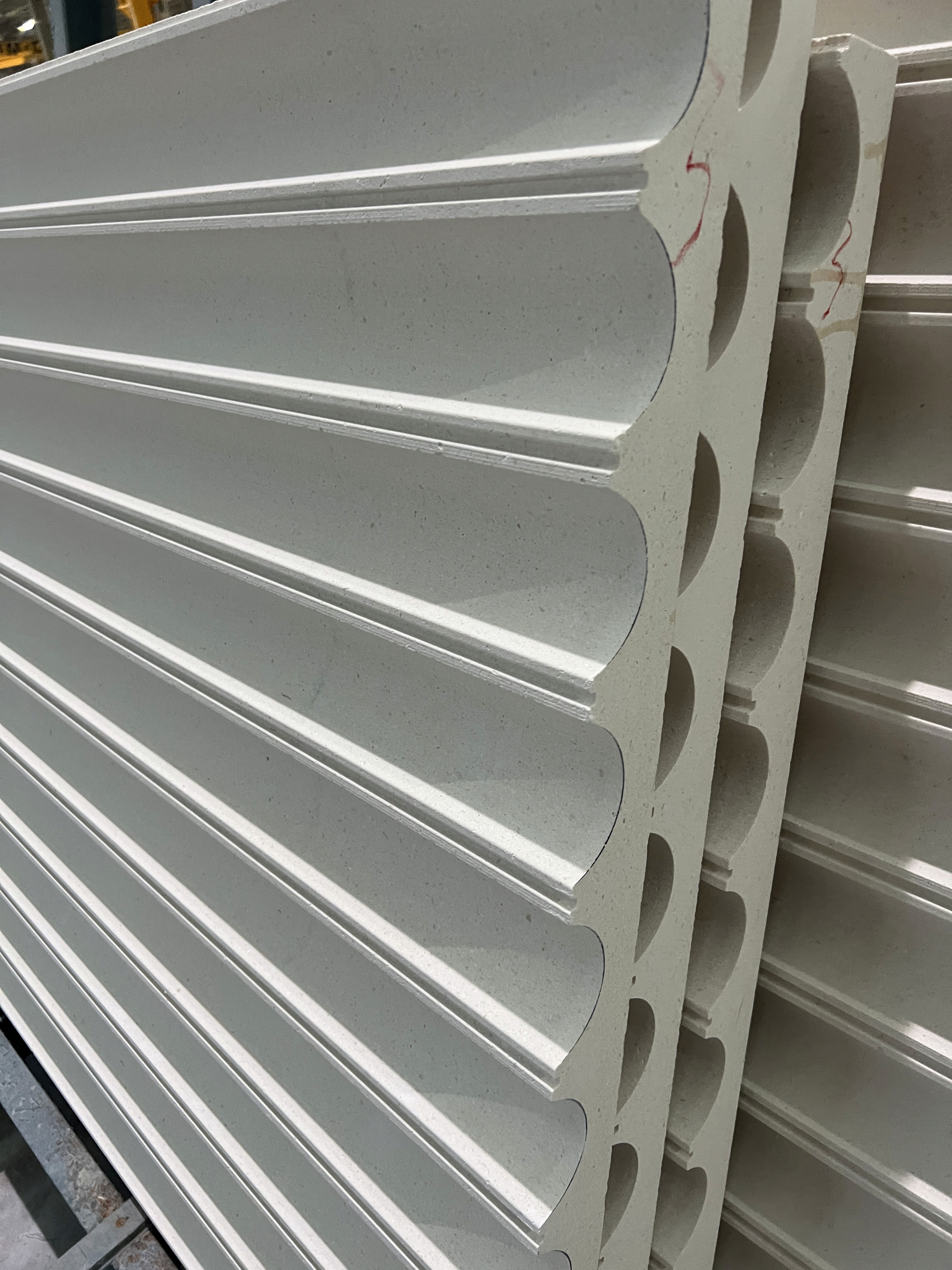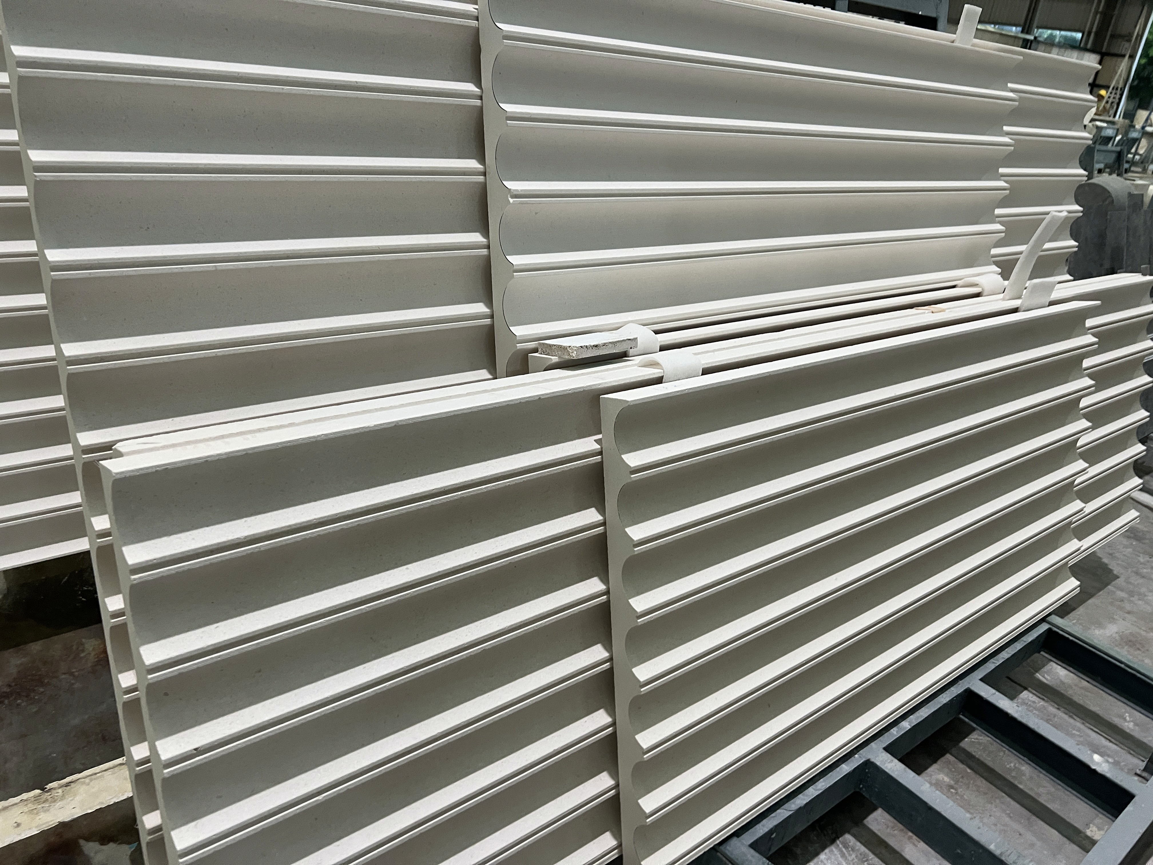 Fluted and Grooved Surfaces: A precision-cut finish that introduces a vertical rhythm to creamy limestones and marbles. This technique creates a dynamic interplay of light and shadow, offering a classical yet modern elegance. It is particularly effective for high-end reception desks, feature walls, and bespoke vanities.